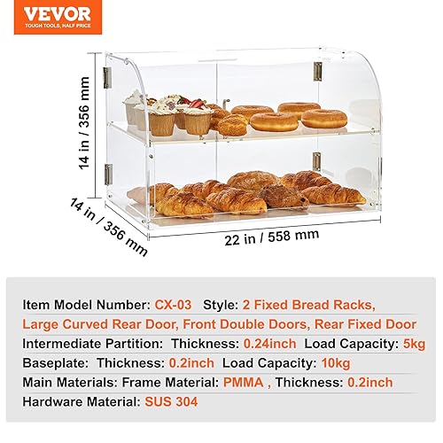 VEVOR Présentoir à Pâtisserie à 2 Niveaux Vitrine de Boulangerie Transparente en Acrylique Léger Étagère Présentation Pâtisserie pour Pain Viennoiserie Dessert Bonbons Bar Café Magasin Restaurant