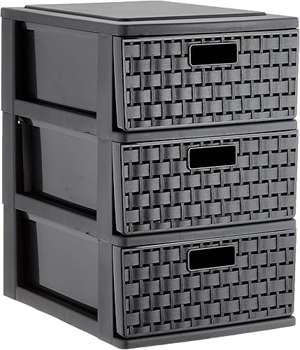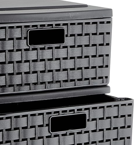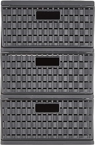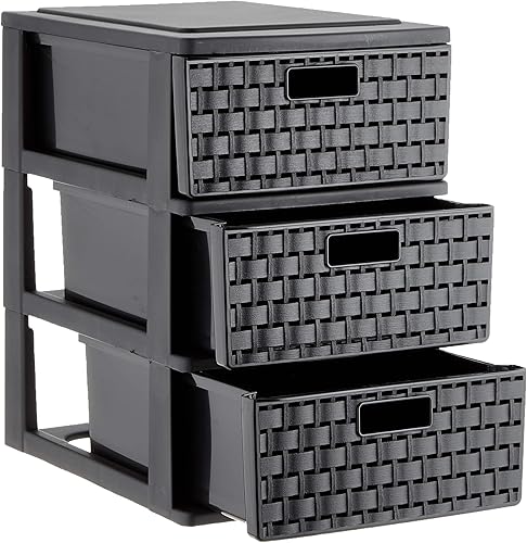 SUNDIS - Tour de rangement Country - 3 Tiroirs Format A5 ( 2 Litres ) - Effet rotin élégant - Système 'Stop Tiroirs' - Noir - 4536005
