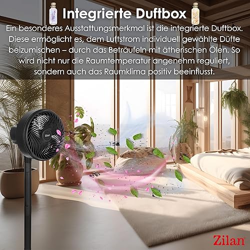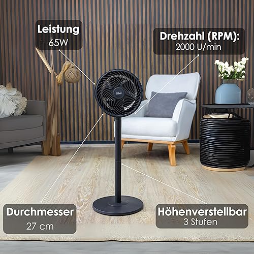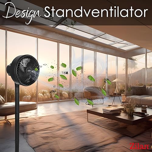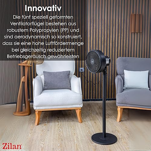 Zilan Ventilateur sur pied 65 W - Très silencieux - Économie d'énergie - 3 niveaux de débit d'air élevé - Oscillant à 90° - Réglable en hauteur - Ventilateur de sol mobile - Ventilateur sur pied