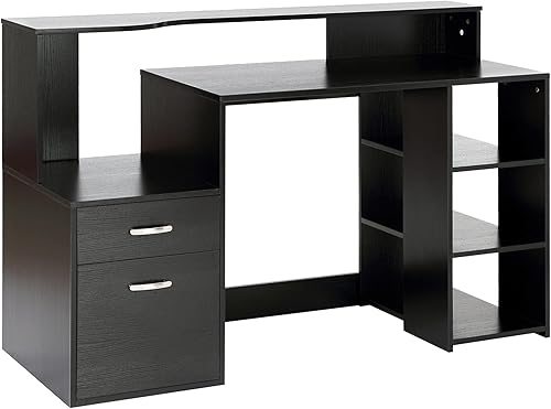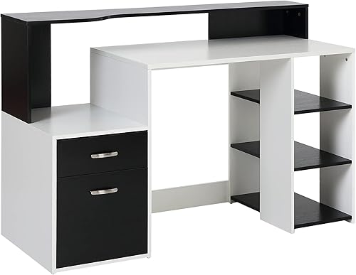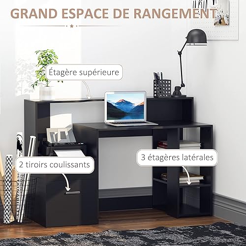 HOMCOM Bureau Informatique Bureau avec Rangement multimédia Design Multi-rangements 137 L x 55 l x 92 H cm chêne Blanc