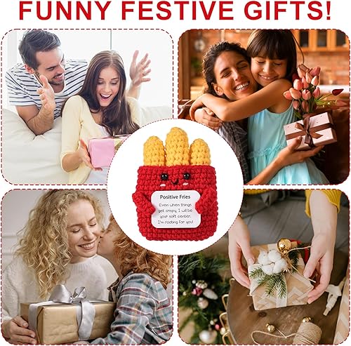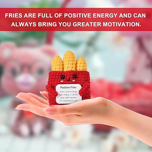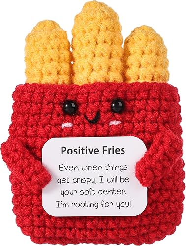 Mini Poupée de Frites Positives Drôles, 9cm Créative Frites de Soutien Émotionnel, Jouet au Crochet avec Carte, Knitted Poupée Inspirante en Laine Cadeau d'Encouragement pour Enfants Amis Fête