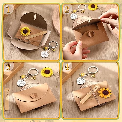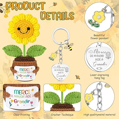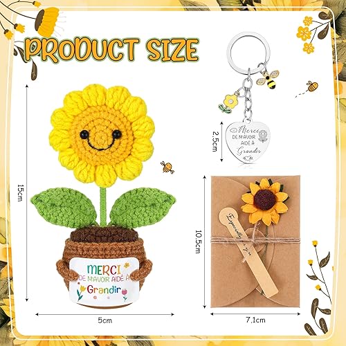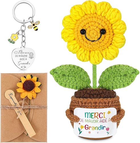 Namalu Cadeau de Maitresse Cadeau pour la Fête des Enseignants Mini Poupée Tournesol au Crochet avec Carte Porte-Clés pour Professeur Carte de Vœux en Papier Kraft avec Fleurs Séchées