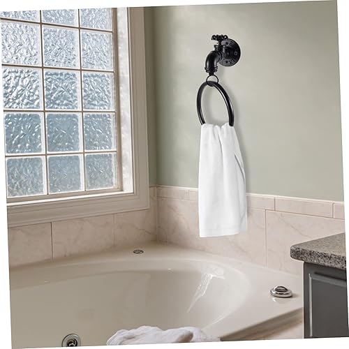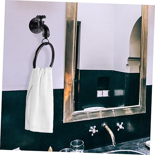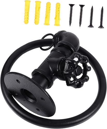 POPETPOP Anneau Porte-Serviettes Mural pour Robinet Décoration Rustique Porte-Serviettes Mural Rétro Porte-Serviettes De Cuisine Porte-Serviettes en Métal Noir