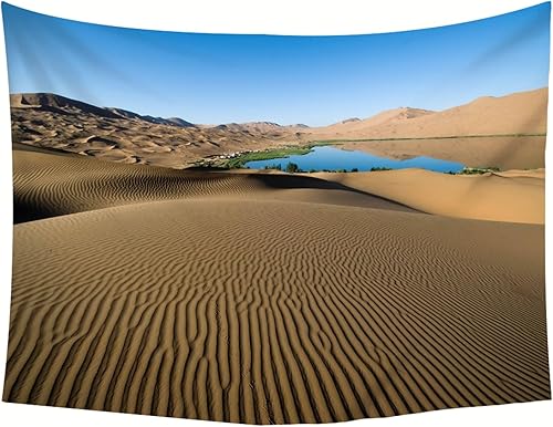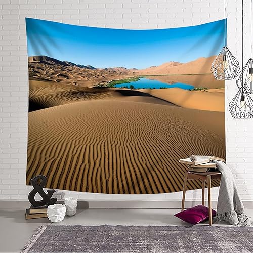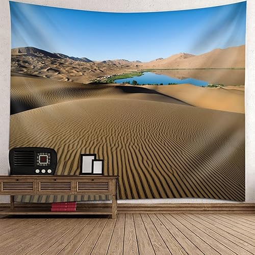 Lirzxin Tapisseries Décoratives, Tapisserie Murales Marron Bleu Paysage de Dunes de Sable et de Lac Couverture Decoration pour Maison Salon Chambre Dortoir, 200x200CM