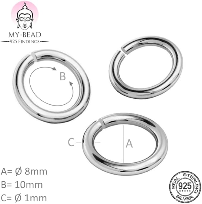 My-Bead 3 pièces grands anneaux ronds ouverts Ø 8mm Argent 925 hypoallergénique pour la création de bijoux DIY