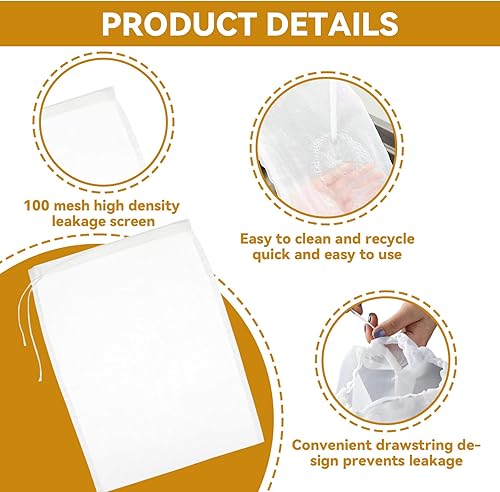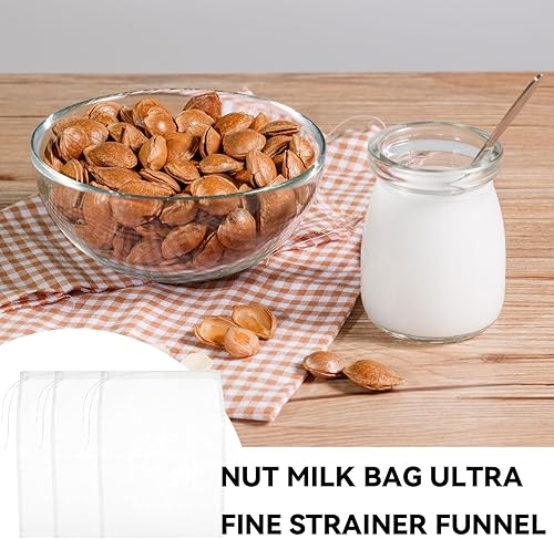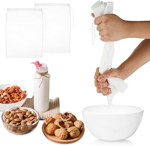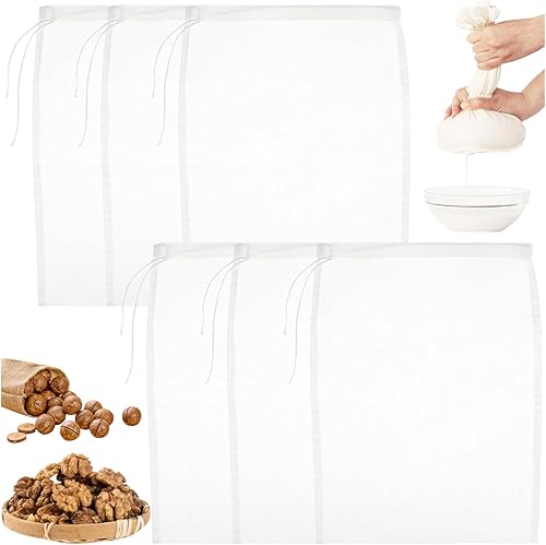 SoeUyd Tissu Filtrant pour Lait D'amande, Lot de 6 Sacs à Lait de Noix, Tissu Filtrant en Nylon Lavable et Durable, Convient pour les Laits de Noix, Les Jus de Fruits, Les Jus de Légumes (Sachets)