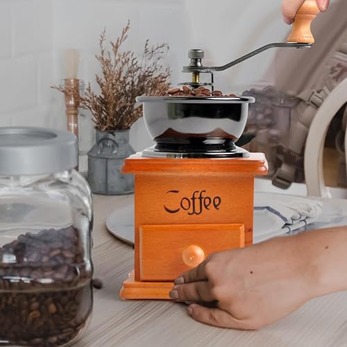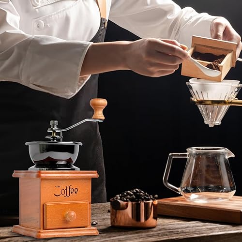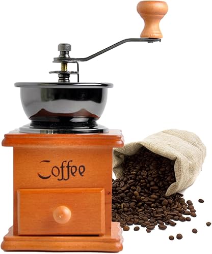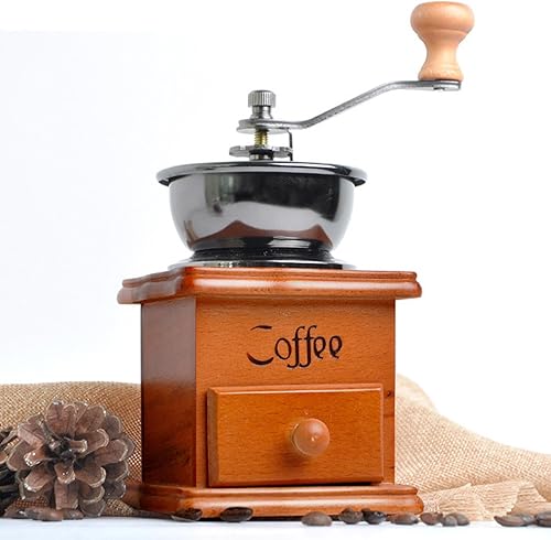 Moulin à grains de café - Moulin à café vintage en bois - Moulin à café manuel avec bavures - Moulin à café antique - Pour la maison, la cuisine, le bureau, les voyages