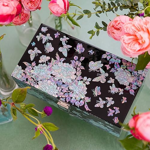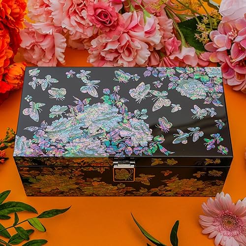 February Mountain Boîte décorative Mohter of Pearl avec couvercles pour décoration d'intérieur Plateau Cadeau unique pour les femmes qui ont tout fait à la main