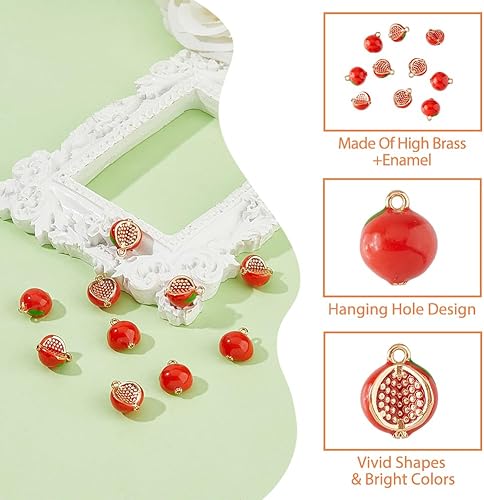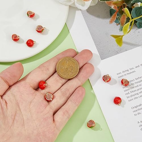 SUPERFINDINGS 10 Pièces Breloque Grenade Rouge Breloque Grenat 3D Breloque Fruit en Laiton Émaillé Et Breloque Mini Nourriture en Plaqué Or pour Boucles d'oreilles Bracelet Collier Bricolage Bijoux