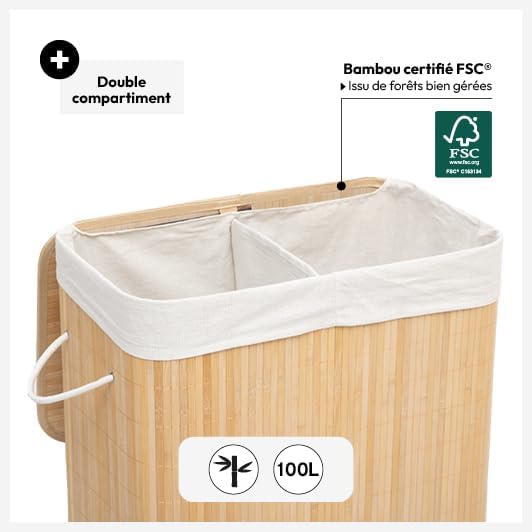 5five - Panier à Linge 100l Double Bambou