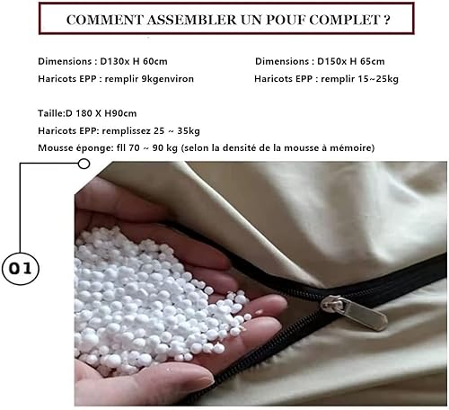 WXQY Pouf Housse Rond Extensible Gris/Bleu/Rose Adulte Geant Housse De Pouf Fourrure XXL Exterieur sans Remplissage Fauteuils Poire Housse Facile à DéMonter Et Lavable (Color : S, Size : 180X90cm)