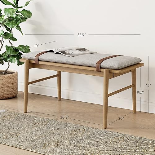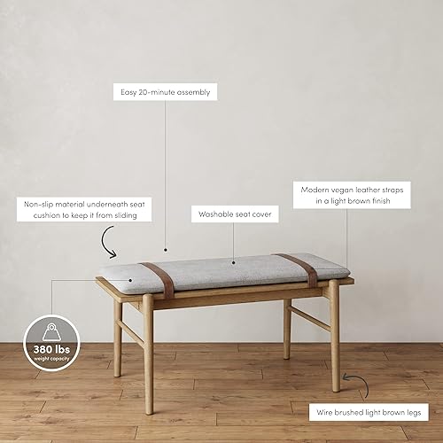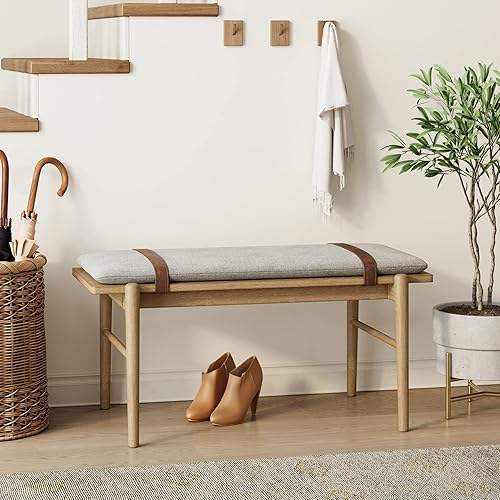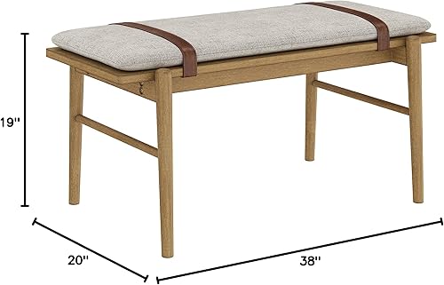 Nathan James Gugan Banc d'entrée en bois du milieu du siècle, pour salle à manger, marron clair/ivoire