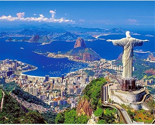 DIY 5D diamant peinture Kit Complet Brésil bâtiment paysage Diamond painting adultes/enfants cristal strass toile photos full diamant point de croix pour la maison décor cadeau Round Drill,40x50cm