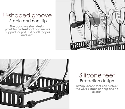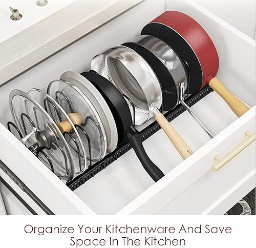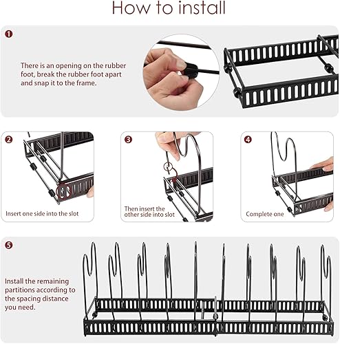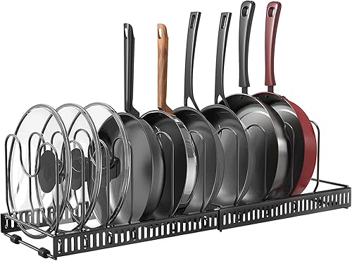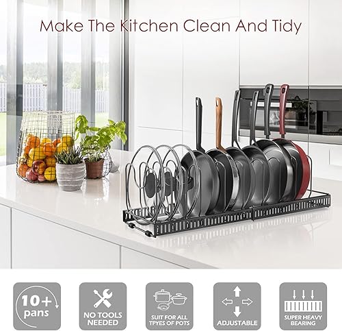 Fimghsoo Porte-casseroles Détachable Support Acier 2 en 1 Organiseur de Poêle avec 8 Compartiments Réglables Rangement de Cuisine (Noir-10 compartiments)