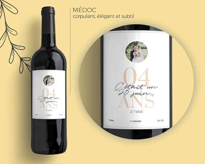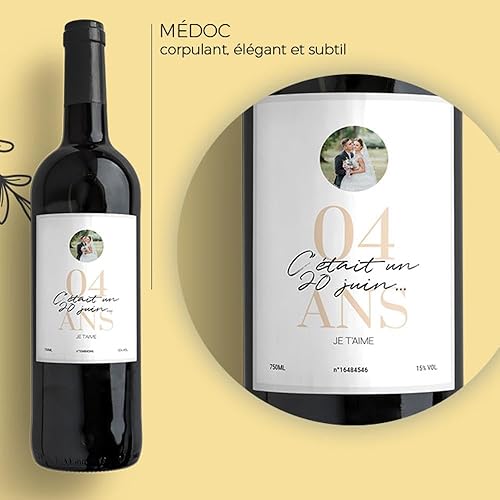 CADEAUX.COM - Bouteille de vin personnalisée anniversaire de mariage - Noces de Cire