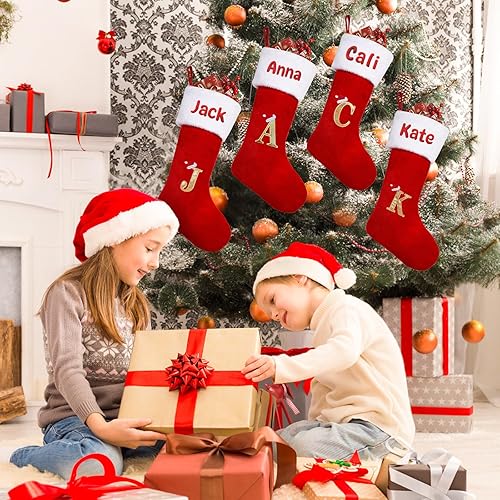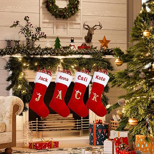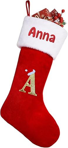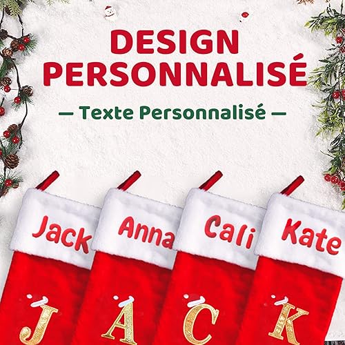 iDIY Chaussette de Noel Personnalisé-21 inch Chaussettes Noel Femme Homme avec Nom brodé, 26 Lettres Personnalisé Chaussette Noel Femme Homme Enfant,Chaussettes de Noel Personnaliser,Velours,1 pièce