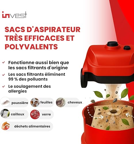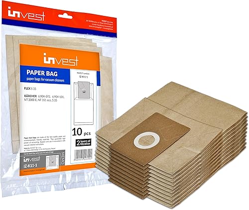 Invest Lot de 10 sacs aspirateur compatibles Kärcher NT 351, NT 351 ECO & 6.906-101 - sacs filtre remplacement haute qualité pour aspirateur professionnel