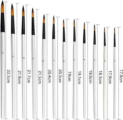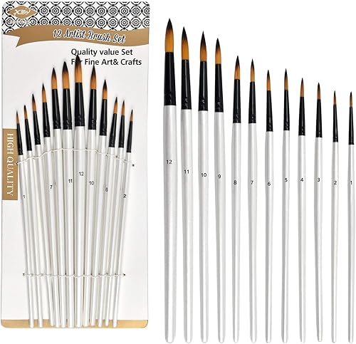 Chstarin 12 Pièces Pinceaux Peinture Professionnels pour Acrylique Huile Aquarelle Gouache et Nail Art, Pinceaux de Peinture Acrylique, Pinceau d’Art, Peinture Brosse pour Débutants et Professionnels
