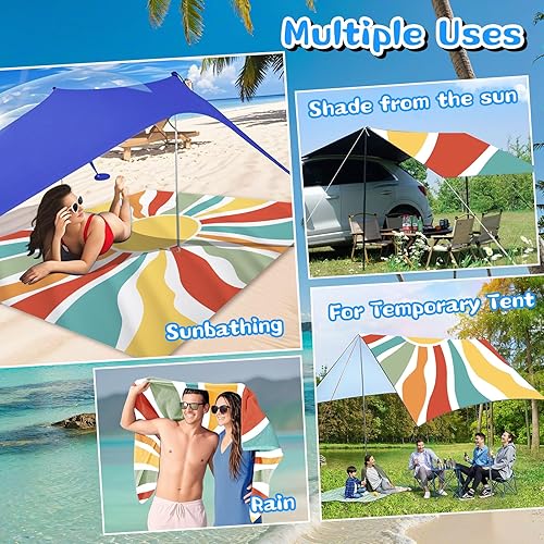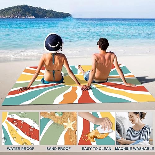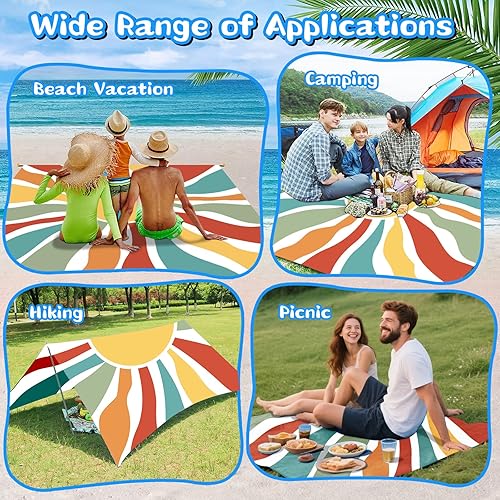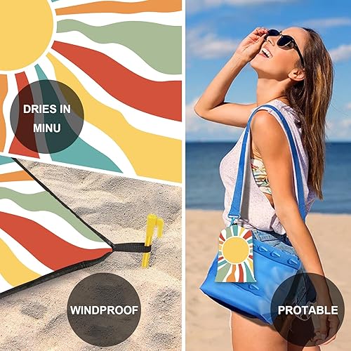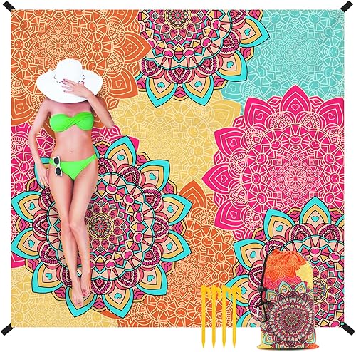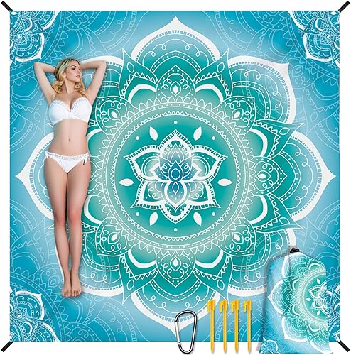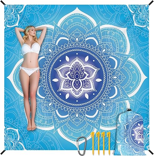Tapis de Plage Mandala 220 x 200cm Grande, imperméable, Anti Sable, Lavable Couverture de Pique-Nique, pour Le Voyage, Le Camping, Les Vacances, Camping, Plage, Jardin-Sac de Transport Inclus(Bleu)