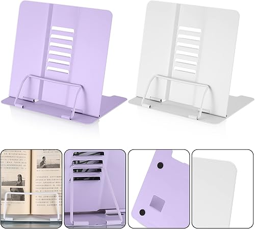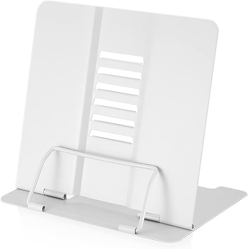 Support de lecture en métal, porte-livre, support de livre 6 positions réglables, support de livre en métal pour la cuisine, l'école, la musique, les livres de cuisine - Blanc