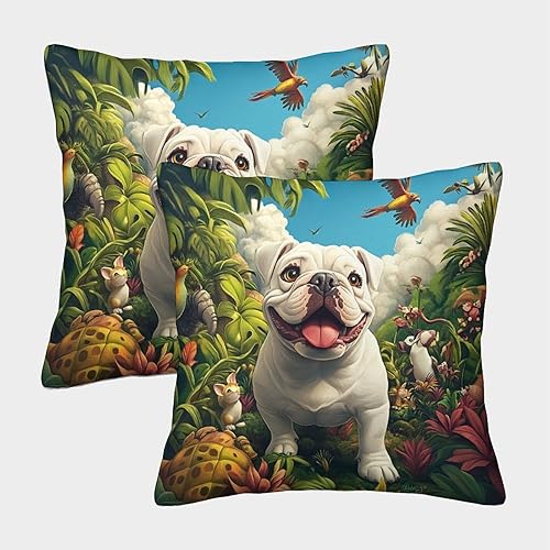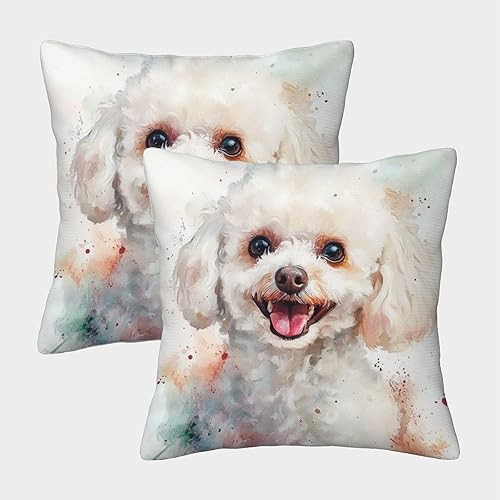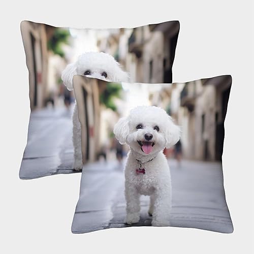 FELASBUID Bichon Frise Housse Coussin Lot De 2 Animaux Canapé Taie d'oreiller Décorative Housses Coussins Salon pour Chambre Famille 45x45cm