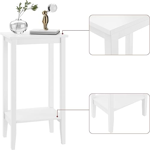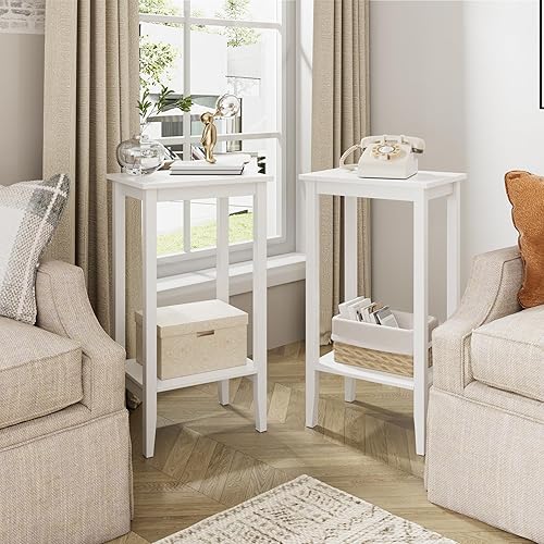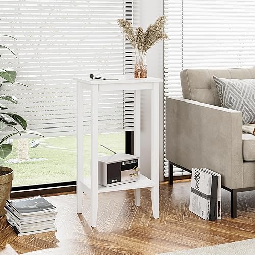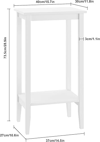 fevarbord Table d'Appoint Bout de Canapé Table de Nuit avec 2 étagères Table de Chevet Blanche pour Salon Chambre à Coucher en Bois 73.5x40x30cm