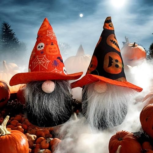 NARAMAKI 2 Gnomes d'Halloween décoratifs 15 cm – Paire de Gnomes Halloween sans visage – Décorations Halloween – Automne