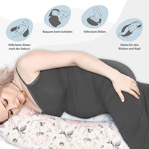 Housse de Coussin de grossesse et allaitement 190 cm – coussin maternité et corps ou oreiller de grossesse Soutien pour dormir sur le côté et allaiter Parfait pour femme enceinte oreillers forme de C