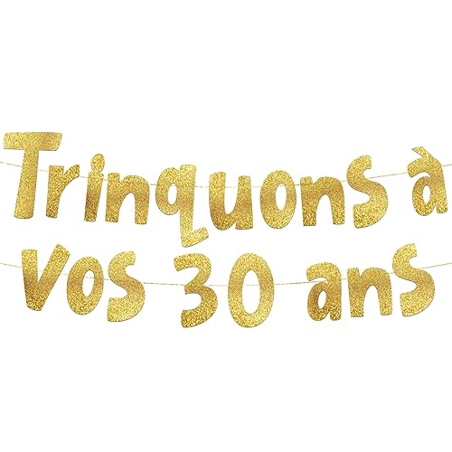 Bannière dorée à paillettes « Trinquons à vos 30 ans » – Bannière de fête 30 ans de mariage – Décorations et fournitures de fête et anniversaires de mariage