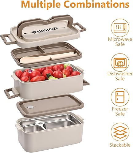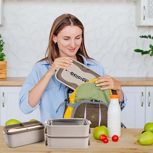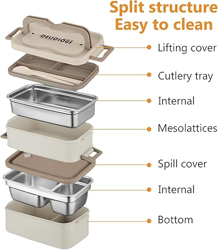 Anseom Lunchbox Boîte à Bento 700-2800ML Boîte à Déjeuner en Acier Inoxydable Bento Box et Couverts Boite Bento Japonais pour Chauffage au Four à Micro-ondes Boîte à Repas pour Enfant Adult (2 étages)