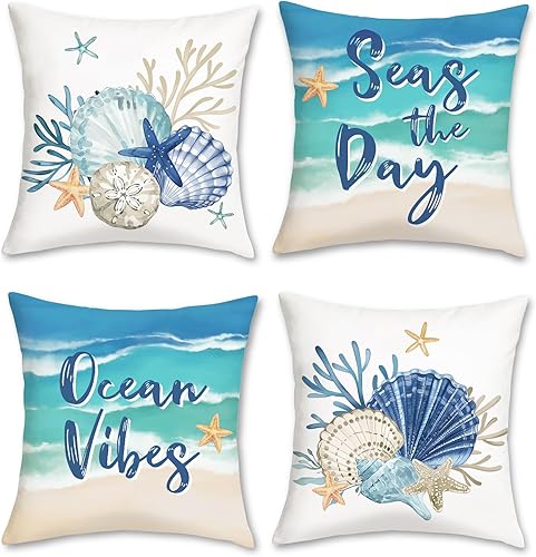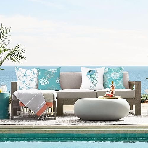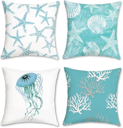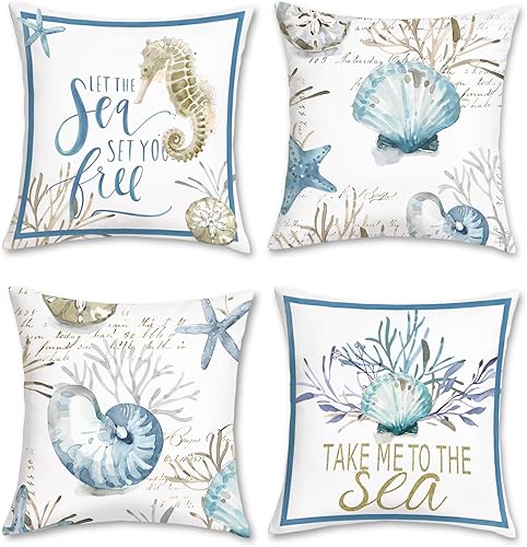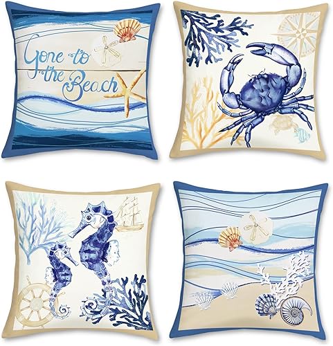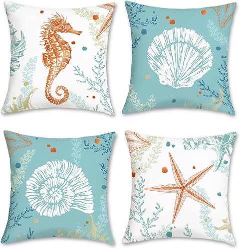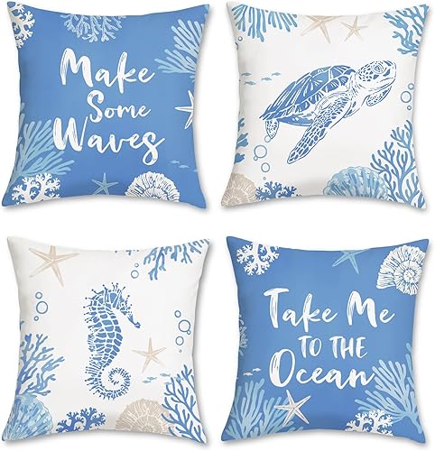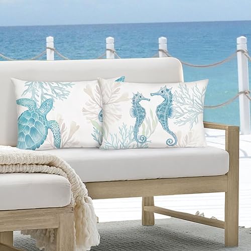 Bonhause Lot de 2 housses de coussin décoratives pour canapé, chambre à coucher, 30 x 50 cm, motif hippocampe et tortue de mer