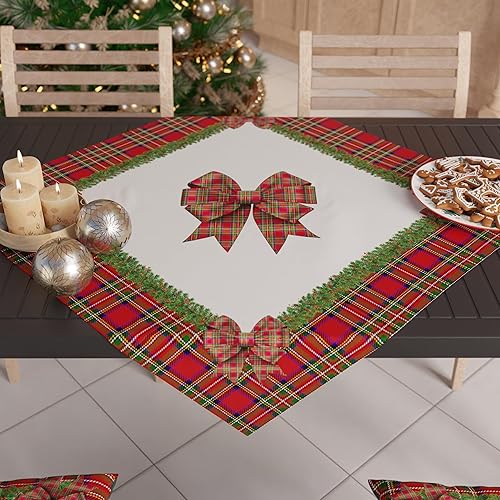 PETTI Artigiani Italiani - Centre de Table de Noël 90x90 cm, Tissu en Microfibre Doux et Résistant, Décoration Élégante pour Fêtes, Motif 'Tartan', 100% Fabriqué en Italie