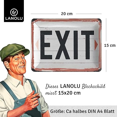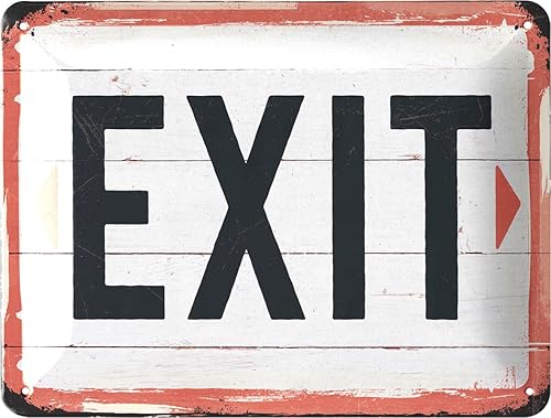 EXIT Plaque en tôle – Plaque vintage cinéma comme décoration de fête, pub et bar – Plaque rétro en métal comme cadeau – Décoration nostalgique – Motif sortie en bois 15 x 20 cm