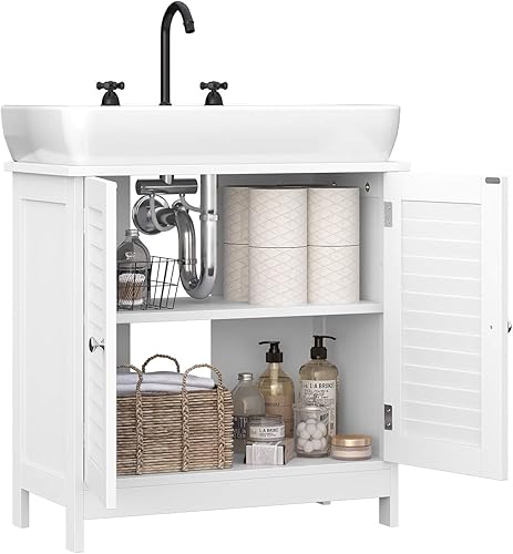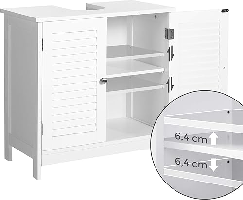 VASAGLE Meuble sous lavabo, Meuble de Salle de Bain, Placard de Rangement, 60 x 30 x 60 cm, avec 2 Portes persiennes, Planche réglable, poignées, Style Nordique scandinave, Blanc Mat BBC05WT