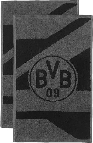 Borussia Dortmund BVB Lot de 2 Serviettes d'invité Gris/Noir