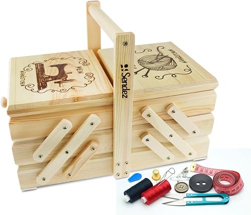 Sendez Boîte à couture XXL avec motif pour accessoires de couture 32 x 15 x 31 cm