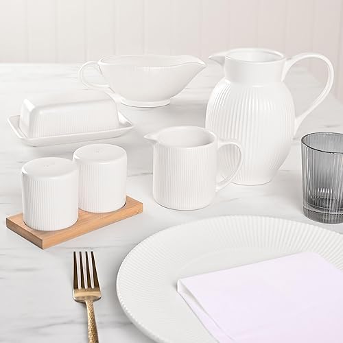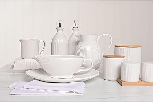 Widdop and Co Hestia Service de table en grès côtelé blanc – Pichet 18 cm x 17 cm x 12 cm – Vaisselle contemporaine élégante – Jolie idée cadeau pour pendaison de crémaillère