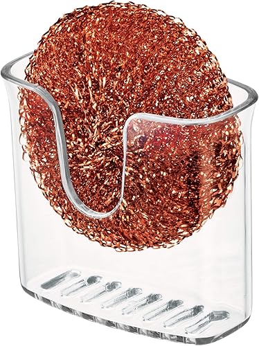 iDesign porte éponge cuisine, petit support éponge avec ventouse en plastique, accessoire cuisine pour éponge ou grattoir, transparent