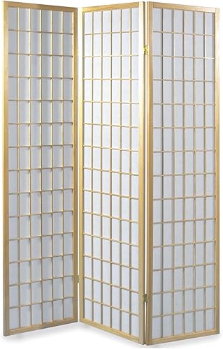 IDIMEX Paravent séparateur de pièce avec Structure en Bois Vernis Naturel et 3 Panneaux repliables en Papier de Riz