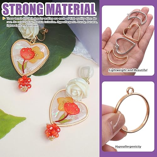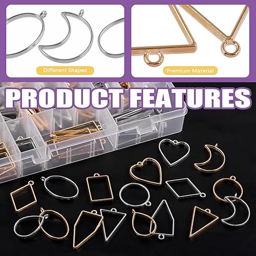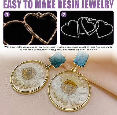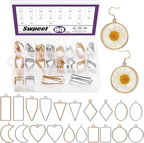 Swpeet Lot de 80 cadres ouverts pour ensemble de résine, 2 couleurs, 10 styles, 10 formes de pendentifs creux en résine, moules à bijoux, pendentifs pour boucles d'oreilles, collier, bracelet, loisirs