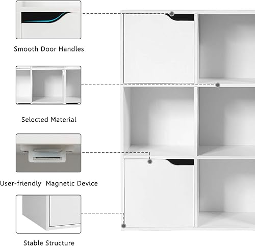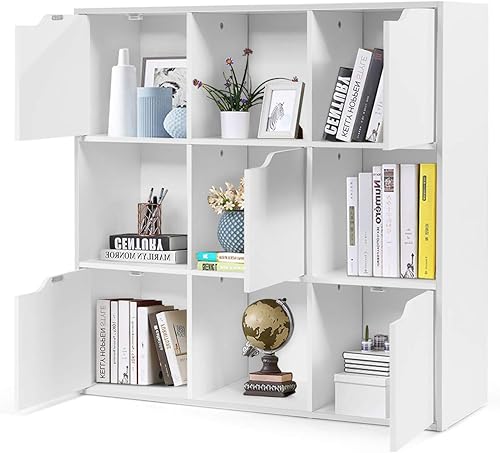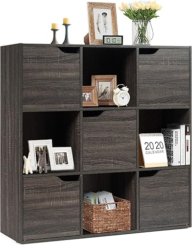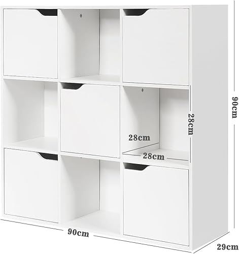 KOMFOTTEU Bibliothèque à 3 Niveaux avec 9 Compartiments, Autonome, Étagère de Bureau avec Fermeture magnétique, Armoire de classement, 90 x 29 x 90 cm, Gris foncé