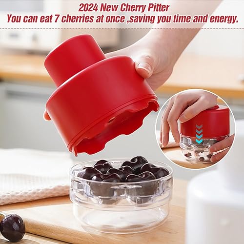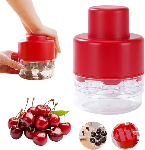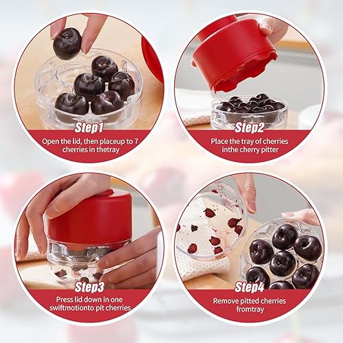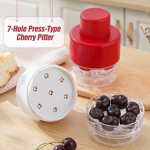 7 en 1 Dénoyauteur Cerises, 2025 Noveu Dénoyauteur de Cerises Manuel, Retrait de Graines À Pression Facile, Dénoyauteur Cerises Idéal Pour Gâteaux et Snacks (Rouge)