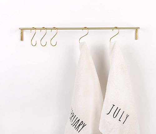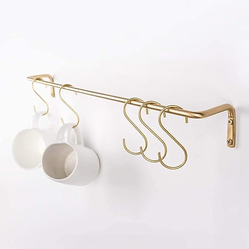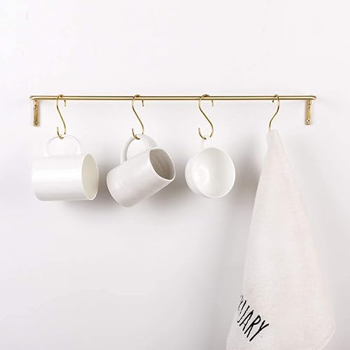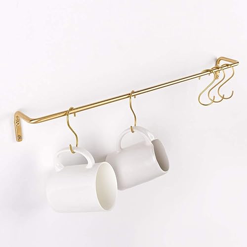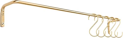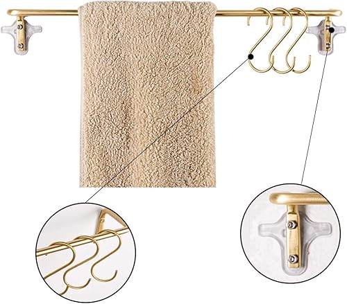 TentHome Barre en Laiton à la Cuisine Tige Suspendue avec 5 Crochets de Rangement pour Salle de Bain Etagère à Fixation Murale pour Casseroles sans Perçage, Antirouille (50cm)