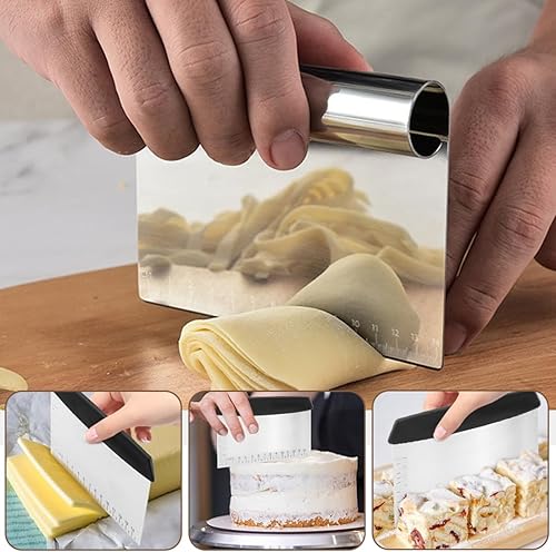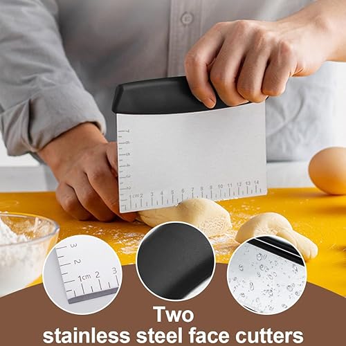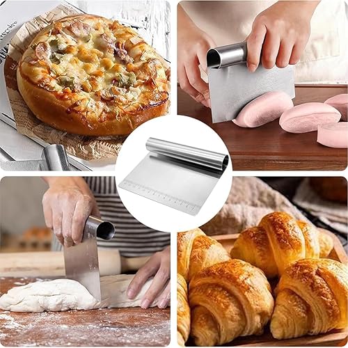 JAWUZ Ensemble 2 Pièces Coupe-Pâte en Acier Inoxydable - Spatule et Grattoir de Cuisine avec Règle de Précision, Outils pour Boulangerie, Pâtisserie, Pizza, Pain et Cuisine