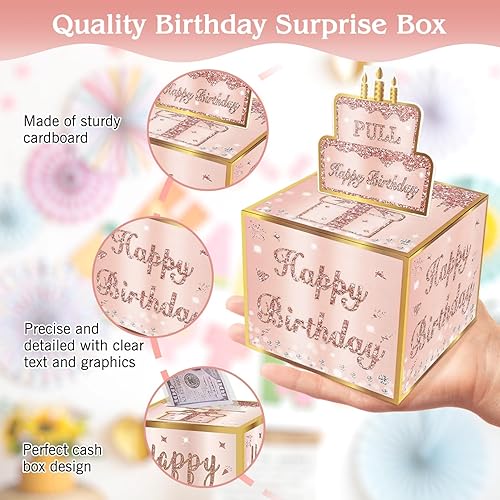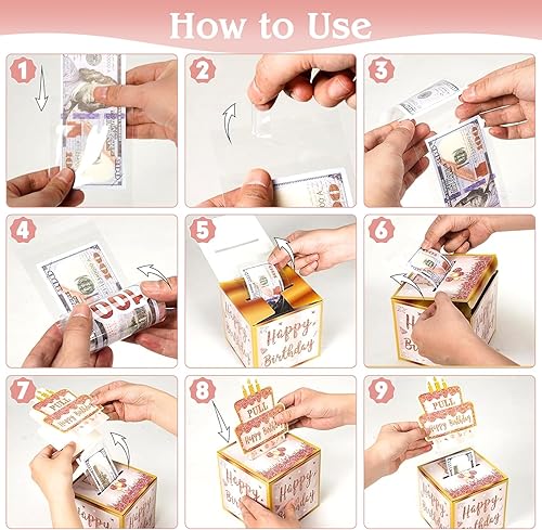 Boîte Cadeau Surprise, Boîte à Billets Cadeau, Cadeau d’Argent Boîte Cadeau, Surprise Cash Cadeau Anniversaire Boîte, avec 50 Pochette Transparente, pour famille, enfants et amis