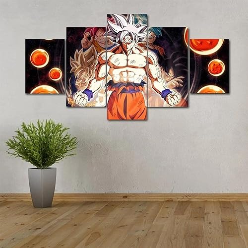 Wondbeau Impression sur Toile Cinq Tableaux Consécutifs Décoration De Maison Moderne Peinture 5 Panneaux Abstraits Modulaire Poster avec Cadre S/75cm×40cm Dragon Ball Anime,Super Saiyan
