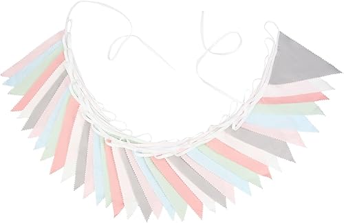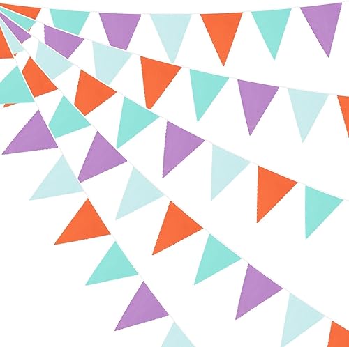 GLFLOW Guirlande de fanions triangulaires en coton vintage à suspendre pour mariage, anniversaire, fête prénatale, fête de jardin, décoration extérieure (vert, violet, orange) 10 m
