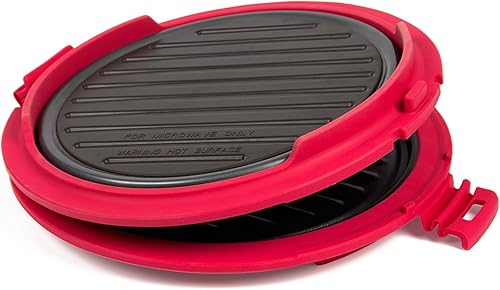 BIRAMBEAU - B.BAD - Grill Micro-Ondes - Spécialement Conçu Pour une Cuisson Parfaite - Ronde - Couleur : Noir & Rouge - Facile d'Utilisation - Lave-Vaisselle