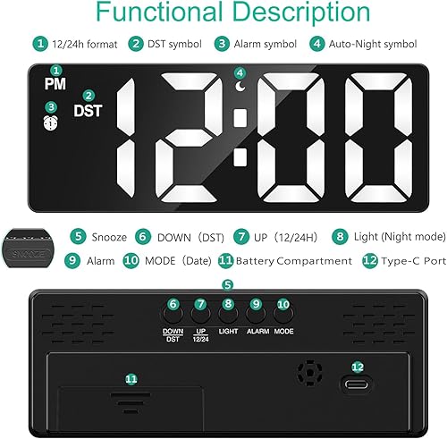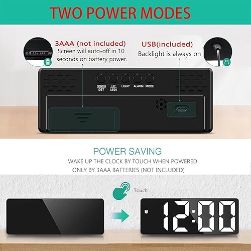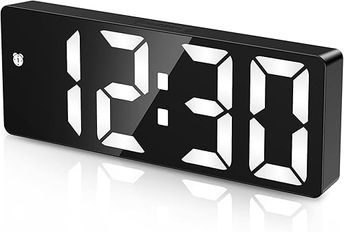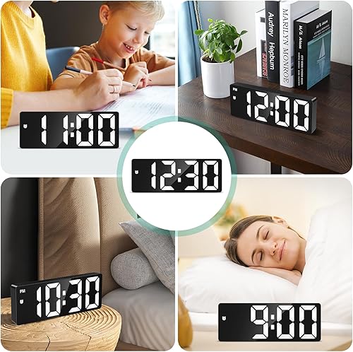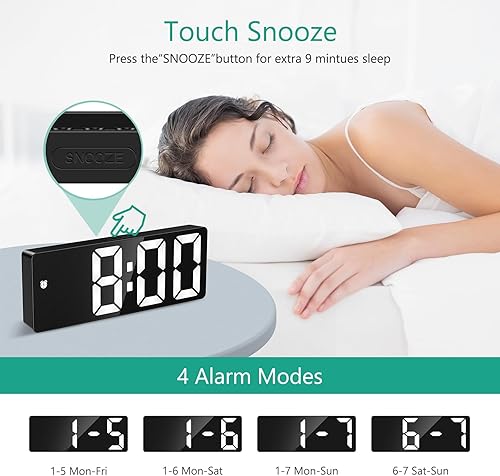 ORIA Réveil Numérique LED, Horloge de Table Moderne, Alarme avec Contrôle du Son, 5 Niveaux de Luminosité, 4 Alarmes Réglables, Date/Heure, Température, Fonctionne avec Piles et USB - Noir