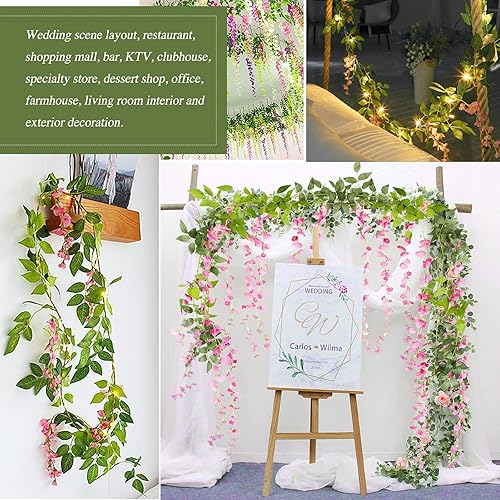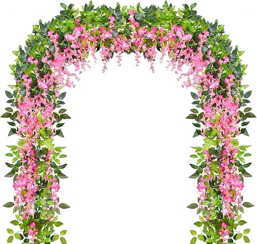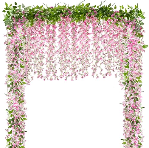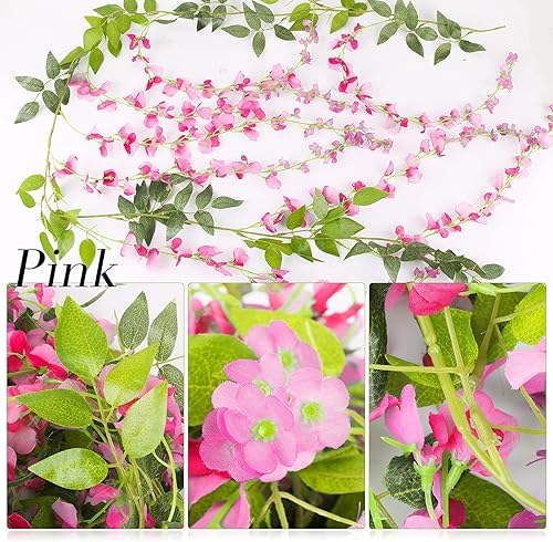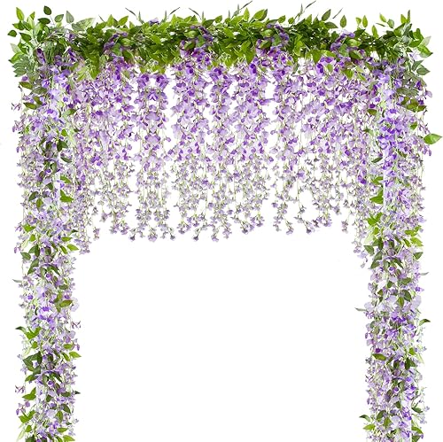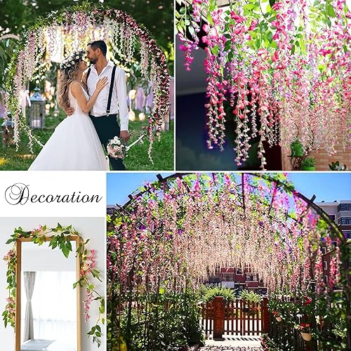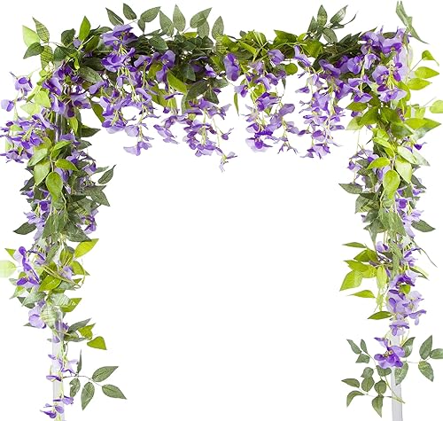 VINFUTUR 5pcs*2m Artificielle Fleurs Wisteria Vigne, Faux Glycine Fleurs Guirlande Suspendue pour Arche de Cérémonie de Mariage Décor Floral - Blanc
